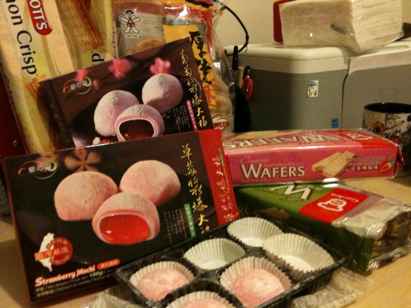 I was writing a shopping list. Listing out every single thing I need. "You spelled snacks as 'snakes', lol!", said Eamon. ... Sometimes I can't help to dislike your frankness. All I wish is to be a cool person. He just destroys that image of mine with no guilt. What I mean is being real COOL and TALL. Often people are physically tall only, yeah, but not for May, she is not tall, but VERY TALL. Shit, I am getting away from what I initially want to write. That was what I bought in the weekend. YUMMY! 1. Garden Wafers (Strawberry) 2. Garden Wafers (Durian) 3. Arnott's Lemon Crisp x2 4. Strawberry Mochi 5. Grape Mochi 6. Want Want rice crackers Cannot resist snacks during holidays, they are the best food when watching anime, lol. Garden and Want Want are famous Hong Kong brands. Eamon loves the durian wafers, but I hate durians so I have a pack of strawberry instead. Rice crackers and biscuits are useful during revisions, and the lemon biscuits feed up stomach too. The mochis simply look nice and sweet! :D I shall buy some chocolate next time, yeah! Labels: diary |